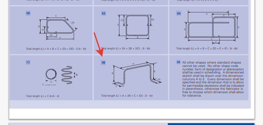 Подскажите, почему у семейства лягушки присвоен номер формы 98? В вашем руководстве "Шаблоны Autodesk Revit 2019 к BIM Стандарту Autodesk" сказано, что номер формы назначается по стандарту BS8666:2005 (первая цифра - количество изгибов, вторая - номер формы). У лягушки 4 изгиба, но первая цифра формы - 9.