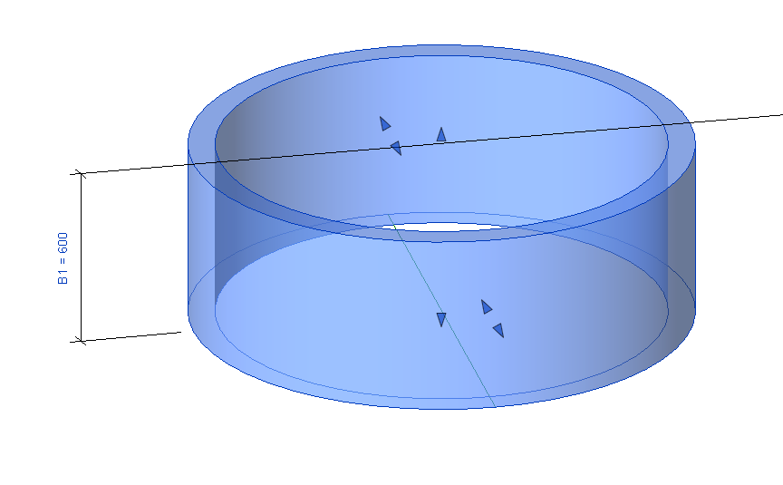 Пришло в голову создать семейство в семействе, но я все равно не понимаю, как привязать нижнее кольцо к низу верхнего и чтобы оно двигалось вниз или вверх, когда высота верхнего кольца становится больше или меньше.